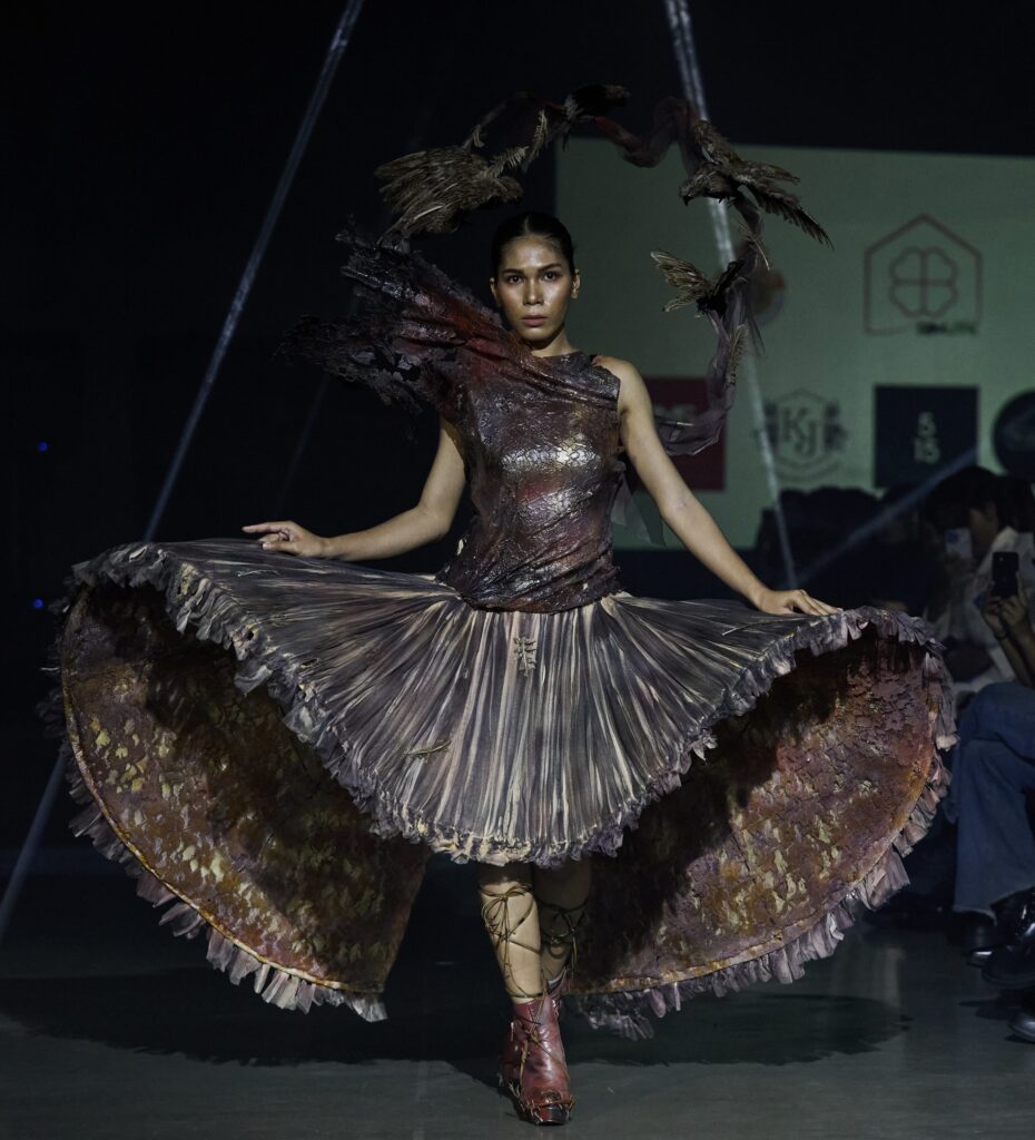 Charawan Klamsri graduated with honours from the Fashion Design program, yet this is not simply a graduation line—it is the materialization of years of effort, doubt, perseverance and ultimately belief. In his thesis collection he lays bare the journey of falling and rising again, of stitching through exhaustion when the world seemed quiet, of committing to creation when sleep eluded him.