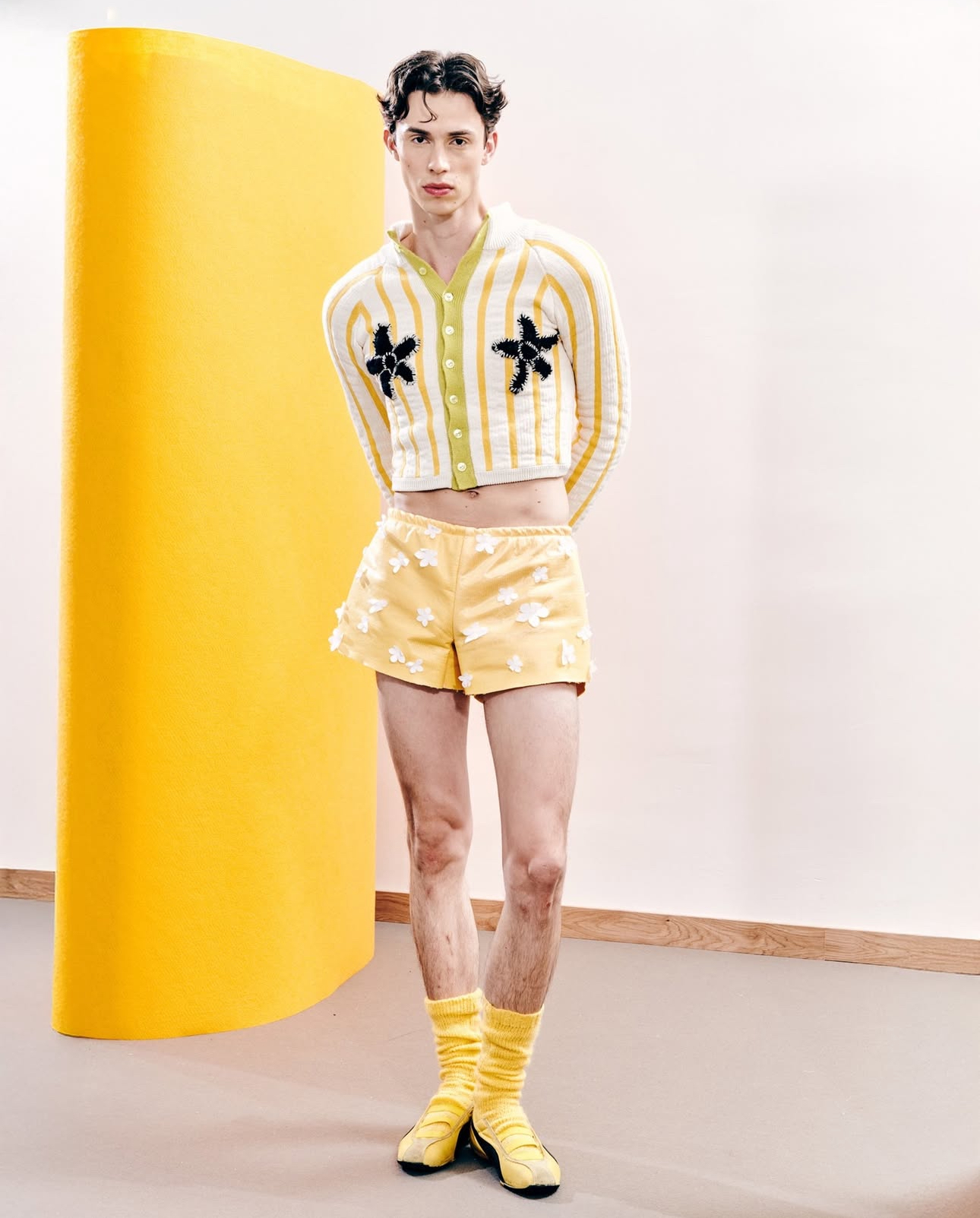 At the intersection of fabric and feeling stands designer TADHG JAMES (they/them) — a name that quietly carries the weight of reflection, honesty, and purpose. Their graduate collection isn’t simply fashion; it’s a map of selfhood. It retraces moments of concealment, dysphoria, and control — and transforms them into garments that demand consciousness.