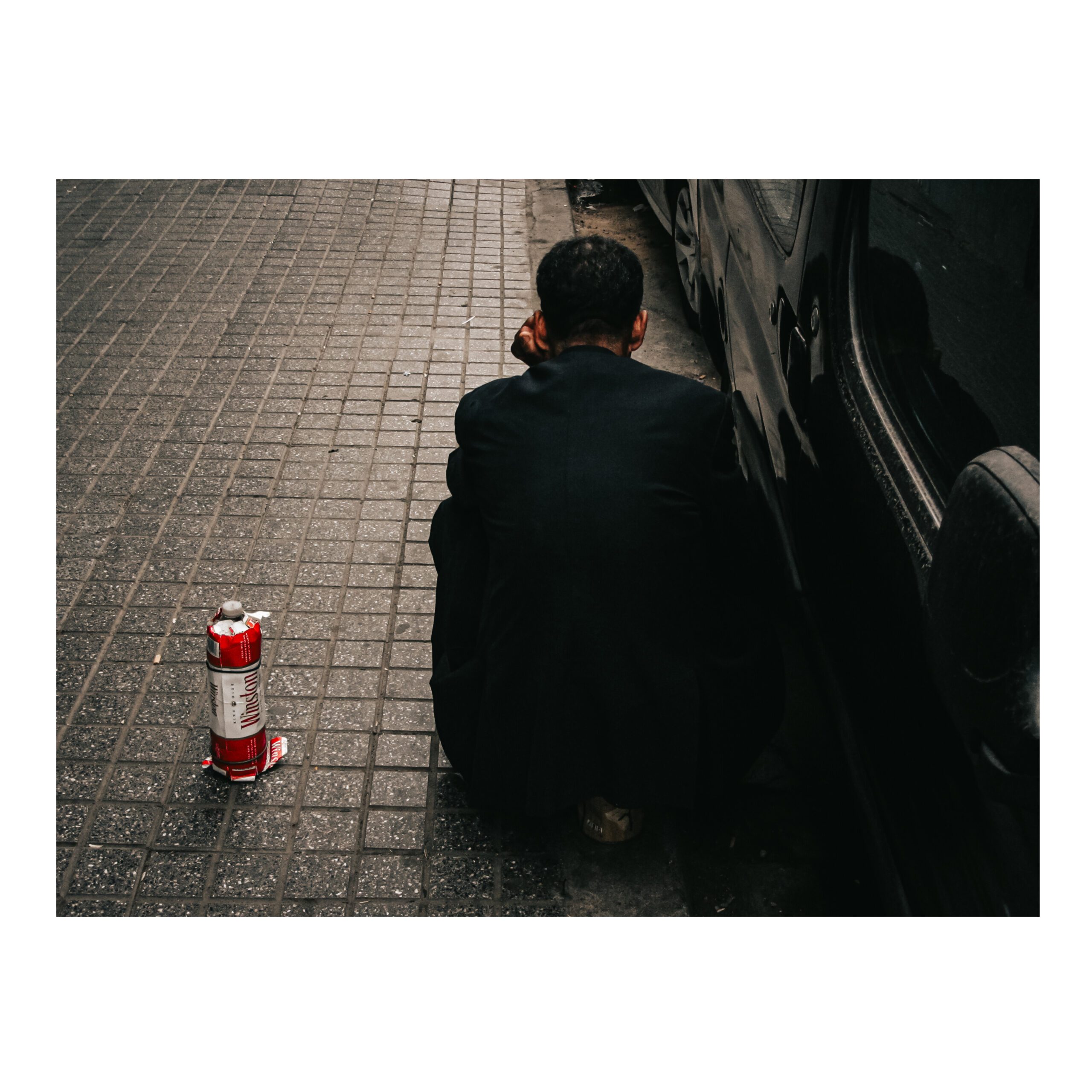 One of his most moving photographs shows an elderly man feeding a group of stray cats. The man bends down gently, offering food to the fragile lives at his feet. Behind him, a shutter marked with graffiti tells a story of time, rebellion, and resilience. “This picture suggests an old man, distinguished by his dress, feeding many hungry cats that have no home,” Gheer says softly.“Out of his noble humanity, he prepared a small shelter for them in the form of a house, only with wood and simple tools, in order to provide them with warmth and reassurance.”
