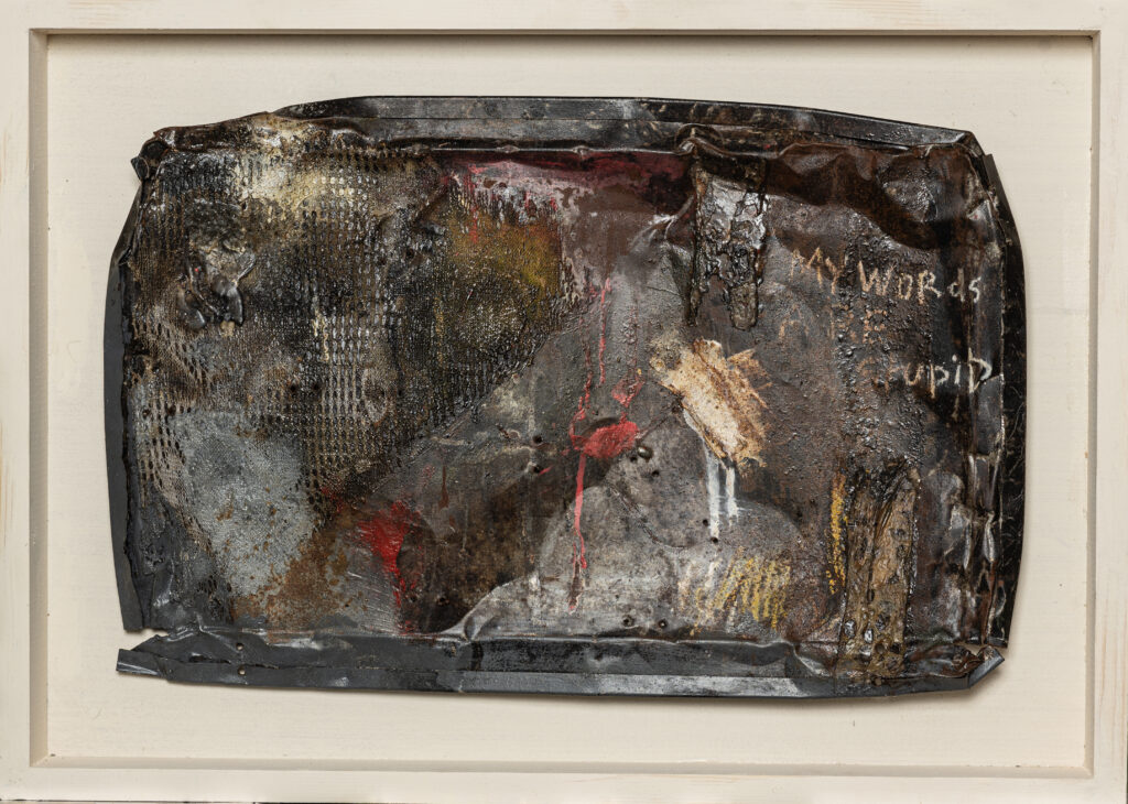 Underlying his philosophy is a paradox: destruction is not the end, but the beginning. In burning, breaking, and corroding materials, Idsidibella discovers a rebirth — a new visual language forged in ruins. Chaos is not only aesthetic; it is substance. Each artwork stages the tension between annihilation and resurrection, reminding us that collapse itself can be generative.
