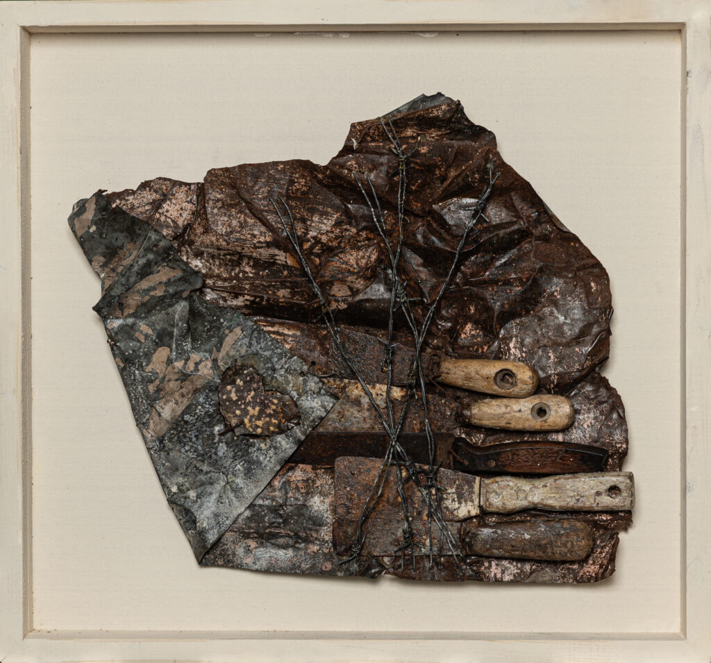 Idsidibella’s work is inseparable from his childhood in the rugged mountains of Souss Massa Draa. Growing up in poverty, he and other children had to invent their own toys and objects from discarded materials: empty tuna cans became cars, scraps of fabric became dolls. That ingenuity, born of necessity, planted the seeds of a lifelong philosophy — that waste could be resurrected, and that decay itself could hold within it a creative force.