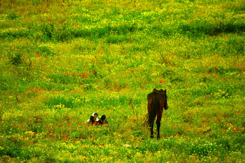 But it isn’t just landscapes that move her—it’s the human stories interwoven within them. She recalls one of her favorite photos taken earlier this year, a scene that has stayed with her: “In front of where I live there’s this vast land that just turns into the most beautiful scenery during spring—green with all kinds of flowers. One day, there was this man lying in the grass with his horse, just enjoying the warm weather and the soft breeze. Meanwhile, the streets next to him were in utter chaos—cars honking, people yelling, the typical day in Casablanca. But he was just in his bubble, ignoring it all, protecting his peace, and enjoying the moment with his horse.”