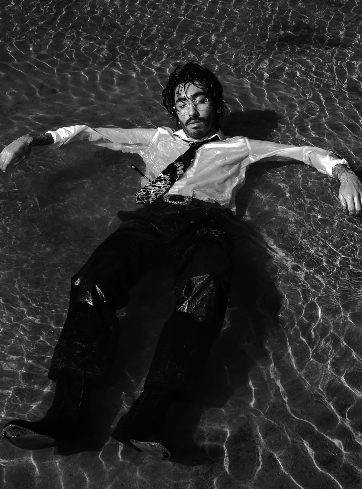 He thrives in the paradox of less and more — fewer garments, but deeper meaning; clean lines, yet a personality that cannot be contained.