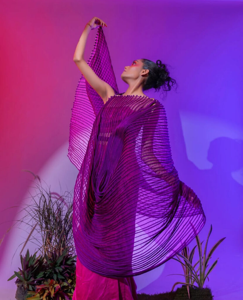 This idea is central to her vision for the future — a future where her work expands beyond fashion into full, immersive experiences. She imagines a brand that merges sustainable craftsmanship, experimental textiles, and collaborations across disciplines — from environmental design and photography to cultural storytelling and performance.