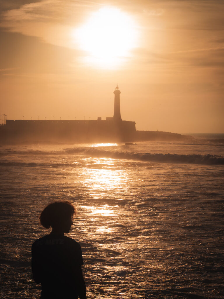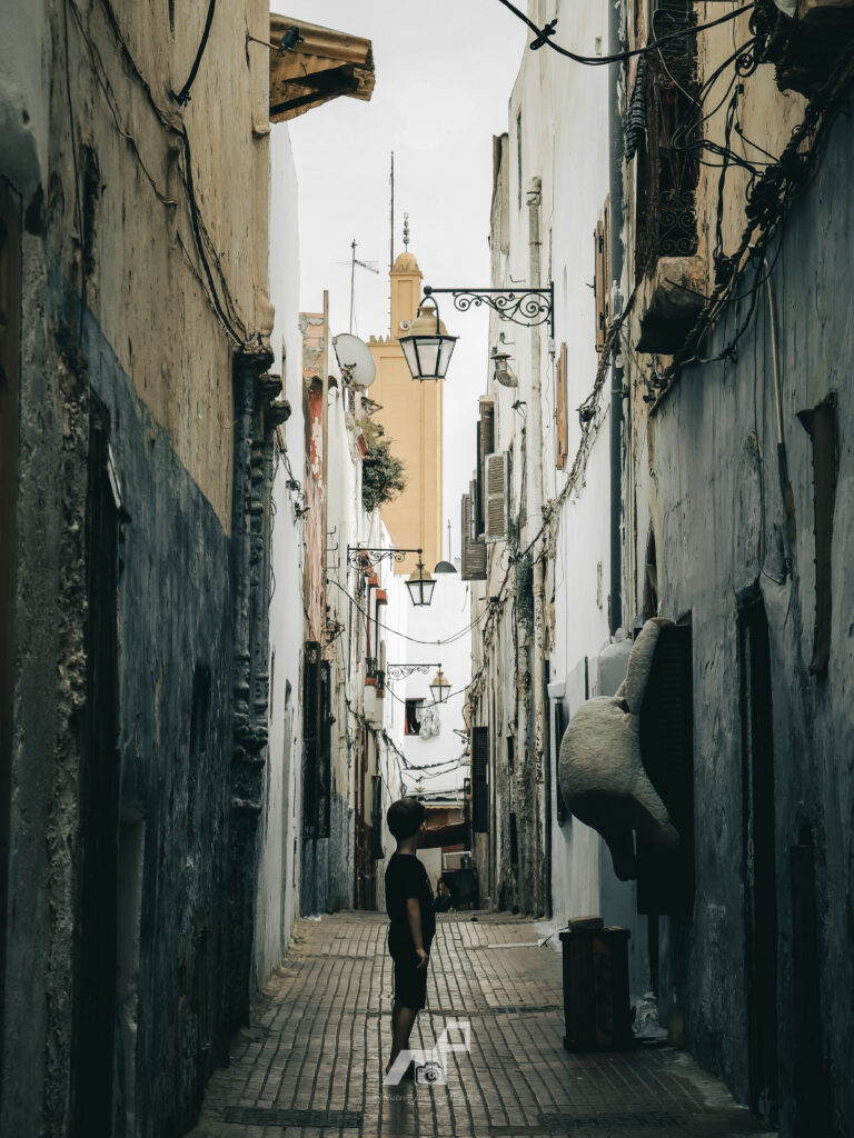 Whether walking through the old Medina of Rabat or pausing beneath the Moroccan skies, every shot is intentional yet spontaneous, guided by instinct, patience, and the ever-present chase for light. One photograph in particular exemplifies this connection between artist and subject. Exhausted after a sleepless night, wandering the Medina with little expectation, the photographer spotted a boy moving through the streets. A simple frame, yet the boy unconsciously aligned himself perfectly in the center, looking towards the mosque—a moment that seemed orchestrated by fate itself. “At that moment I said, wait, this is hallucination. When I reviewed it the next day, I realized we had a connection. This image is my masterpiece,” he recalls.
