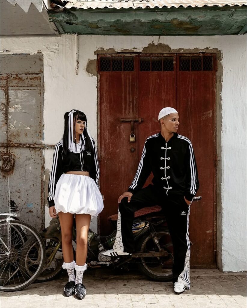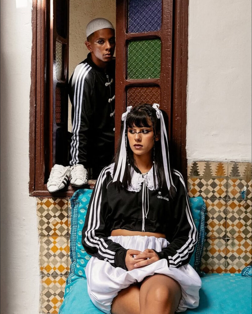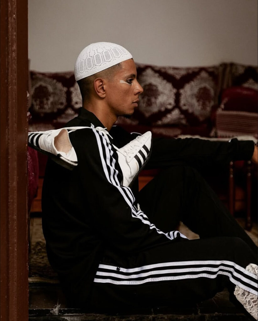 its.Medd, also known on Instagram as @its.medd, was founded with the mission of bridging Morocco’s cultural identity with the visual language of contemporary youth. Their feed is an intersection of portraiture, fashion design, editorial, and urban photography — but the Adidas project pushed their work to new heights.Raised abroad, the creative duo behind the brand carry the layered experience of diaspora. For them, returning to Morocco and engaging with heritage is both personal and political. The act of reworking Adidas isn’t just about sneakers — it’s about reclaiming the narrative of what Moroccan fashion can be.
